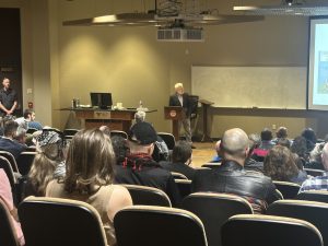 Dr. Norman Goda spoke at YSU on September 29, 2025 to a packed audience